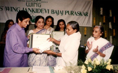 RECIPIENT - Smt. S G Susheelamma (1994) OUTSTANDING CONTRIBUTION - Founder of Sumangali Sevashram in Karnataka. Running schools for Children, Destitute home for Women, Working Women's Hostel and an Old age home. Also supported income generating activities like horticulture & diary products among 2000 women.