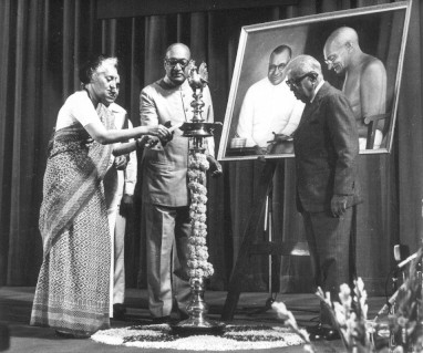 Smt.Indira Gandhi inaugurating the Jamnalal Bajaj Award Function in the year 1982. Also seen are Shri Ramakrishna Bajaj.