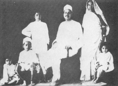With husband Jamnalal Bajaj and children. Standing is Kamla. Sitting are Kamalnayan, Madalsa and Uma (Om). (2nd son Ramkrishna was not born at that time)