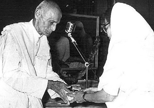 Smt. Ramadevi Chaudhuri receiving award at the hands of Acharya Dada Dharmadhikari, a Gandhian Thinker.