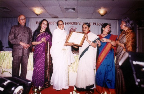 RECIPIENT- Smt. Meena Agarwala (1998) OUTSTANDING CONTRIBUTION - Founder President of 'Tezpur District Mahila Samiti', Assam. Rendered selfless services to people in distress due to floods, earth quakes, riots, etc. besides encouraging economic empowerment & spirit of entrepreneurship amongst rural women. Legal aid is also given to women affected by dowry, repression, divorce and property matters.