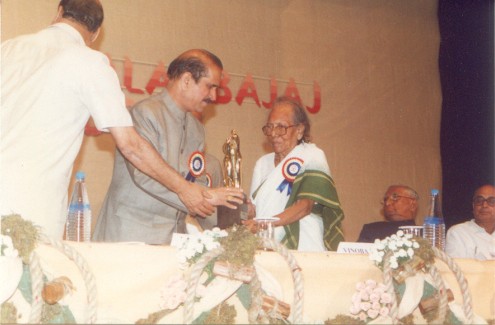 On behalf of Vinobaniketan of Kerala receiving Jamnalal Bajaj Award for the year 1997 from the hands of Shri Manohar Joshi, then Chief Minister of Maharashtra.