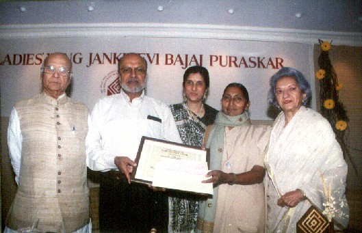 Sister Wandana Dabhi receiving 2003 Purskar from shri. Shyam Benegal , Noted filmmaker. President Amita Haribhakti looks on.
