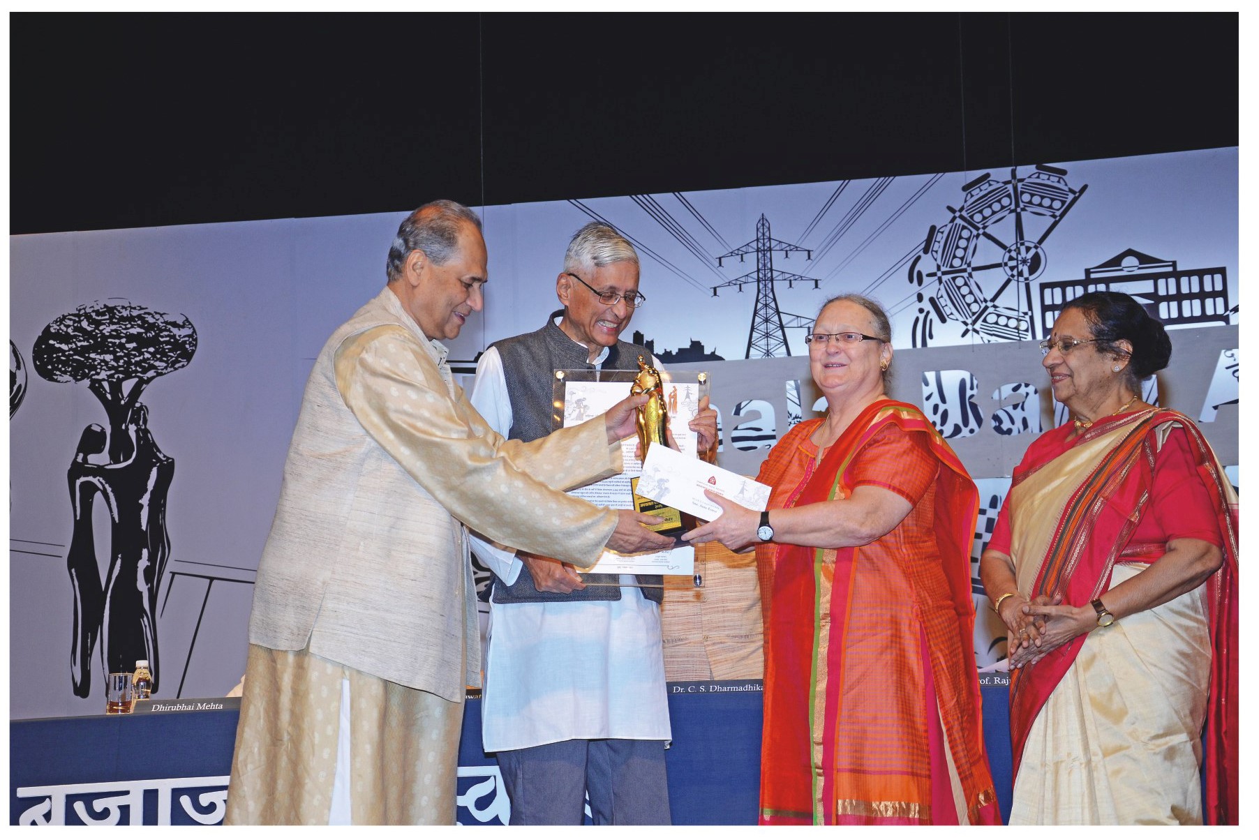 Ms. Anne Ferrer receiving the award at the hands of Shri Rajmohan Gandhi.