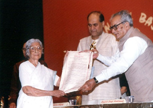 Dr. Smt. Chitra Singh receiving the award at the hands of Hon. Shri Bhairon Singh Shekhawat, Vice President of India.
