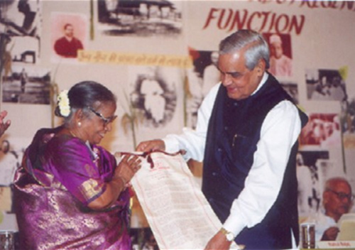 1998 Dr. Smt. Rajammal P. Devadas receiving the award at the hands of Hon. Shri Atal Behari Vajpayee, Prime Minister of India.