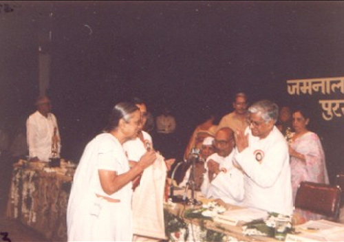 1993 Smt. Kantaben Shah ( jointly with Smt. Harvilasben Shah) receiving the award at the hands of Shri C. Subramaniam, Governor of Maharashtra.