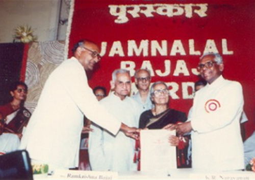 Smt. Shalini Moghe receiving award at the hands of Hon. Shri K.R. Narayanan, Vice President of India.