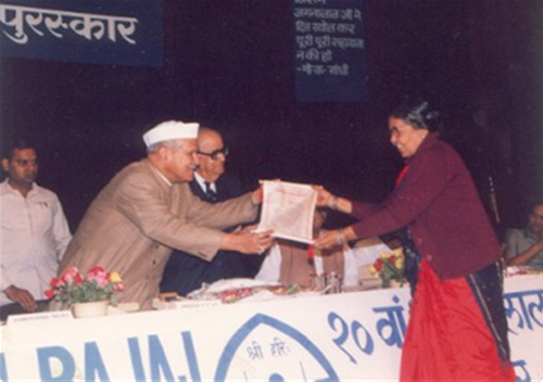 Smt. Annapragada C. Krishna Rao receiving award at the hands of Hon. Vice President of India Shri Shankar Dayal Sharma.