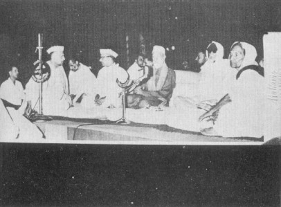 In condolence meeting of Jamnalal Bajaj at Gopuri, Wardha. With Vinoba Bhave, Frontier Gandhi, Sriman Narayan, Balkobaji and Kamalnayan Bajaj.