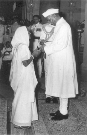President Dr. Rajendra Prasad conferring Padma Vibhushan on Jankidevi Bajaj in the year 1956.